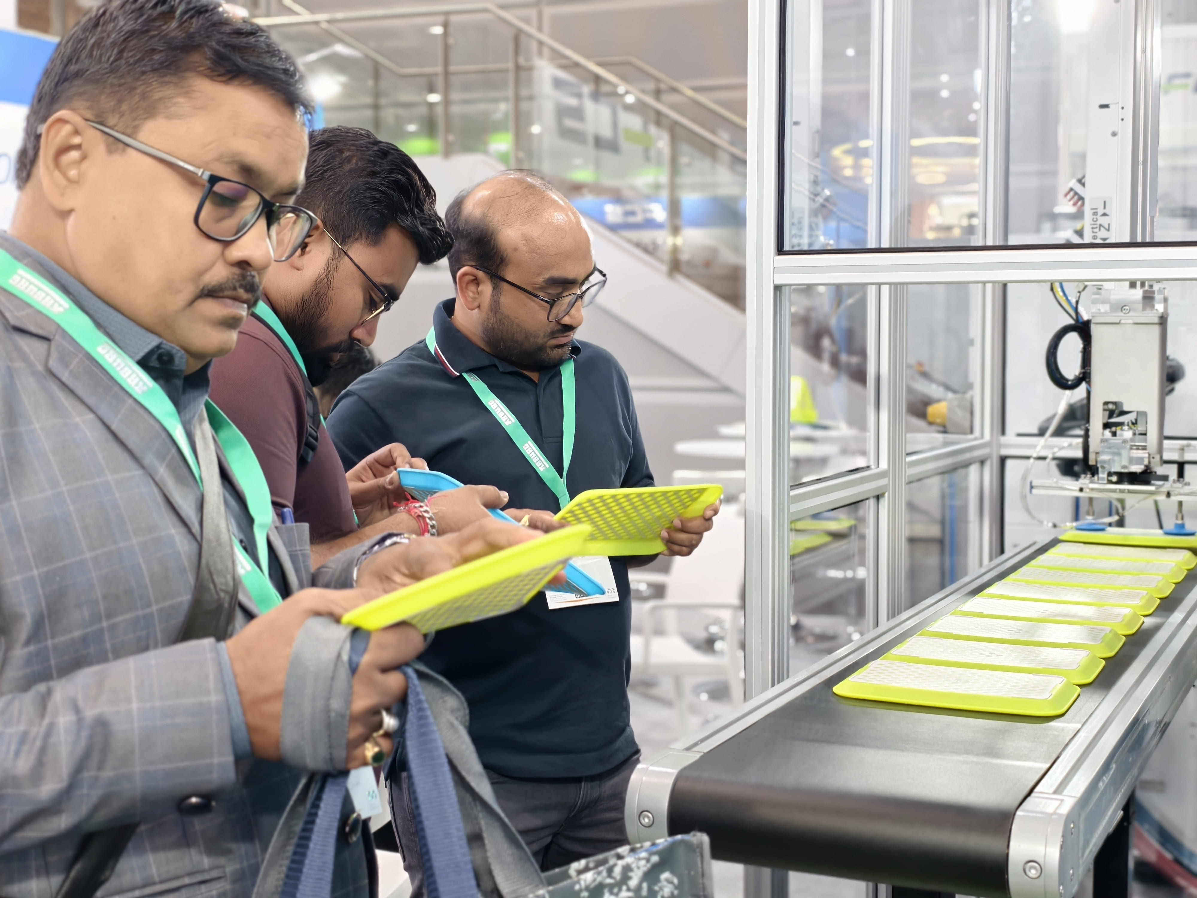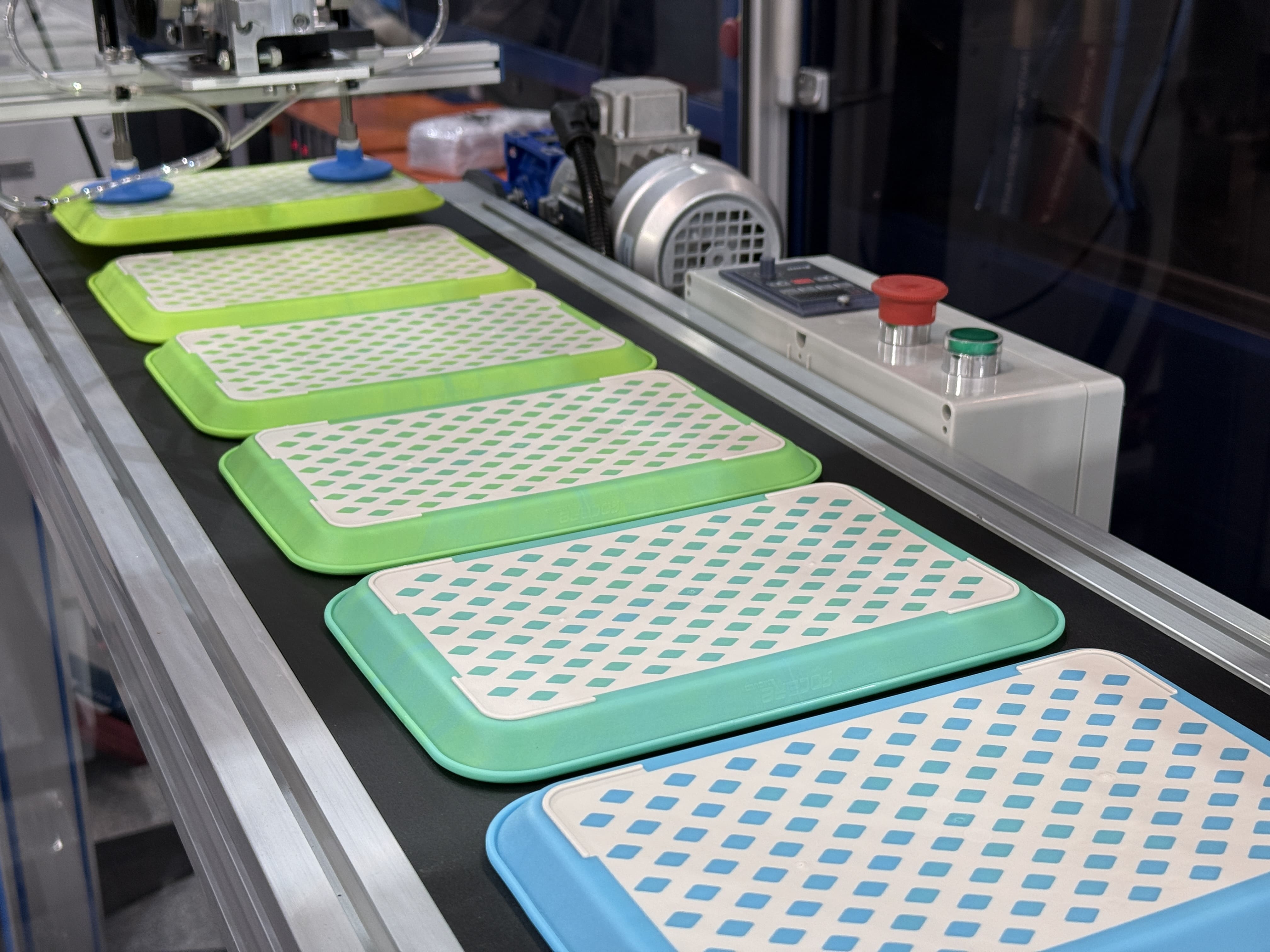 FCS used the CT-230R all-electric two-color injection molding machine to demonstrate a 20-second automated mass-production cycle of PP + TPE two-color trays, fully showcasing FCS’s strength in the 2K multi-material molding field, balancing productivity and sustainability.
