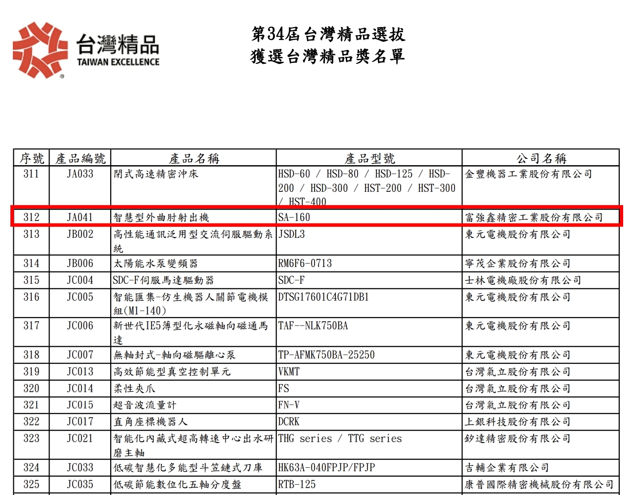 FCS Group announced that its SA-160 Intelligent Outward Toggle Injection Molding Machine has been honored with the 34th "Taiwan Excellence Award." Guided by the Ministry of Economic Affairs and organized by TAITRA, the award recognizes products that excel in innovative design, performance, quality, and market competitiveness, and is regarded as the highest honor symbolizing excellence in Made-in-Taiwan (MIT) products.