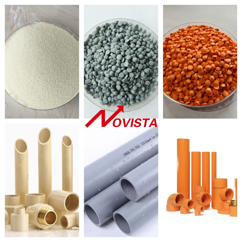 Novista is proud to introduce CHLORINATED POLYVINYL CHLORIDE (CPVC) for Hot and Cold water application keeping up with modern innovations & technology involved in producing the best quality at competitive cost. With mature formulation and advanced compounding technology, we use own CPVC Resin and selected strictly additives to produce our CPVC compound. CPVC pipes and fittings produced by our CPVC compound are most advanced for hot and cold water, Industrial and Fire pipeline system giving numerous advantages and the outstanding blend of physical properties and excellent process ability...