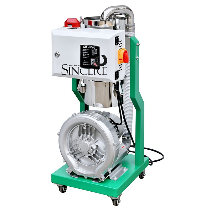 Stainless hopper receiver to eliminate contamination.Microprocessor controller for ease of use and has multiple alarmindicators. Motor overoad protector ensure long motor life.Audible material shortage alarm device.Filter designed for easy cleaning and has filter status checkingwindow for easier monitor of filter condition.Both vacuum hopper and photosensor hoper can be directlymounted on molding machine's feed port. The above-mentionedloaders adopt standard stainless-steel mesh.Cyclone separator can reduce filter dean frequency when used fordusty regrind materials. Proportional valve for mixing virgin and regrinds materials, or formaterial instant recycling.
