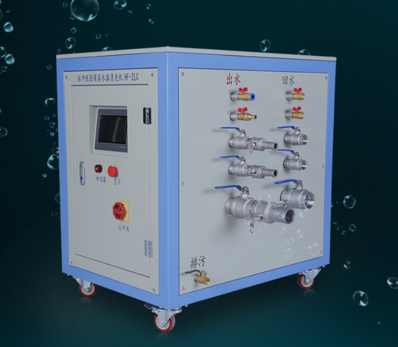 1. PLC computer screen for free adjustment and setting; maximum water pump pressure: 7KG 2.Pulse pressure: 8KG. 3. Three-level (Fast/Medium/Slow) pulse pressure adjustment, pulse speed can be set according to mold size. 4. Blow-dry function: Blows off residual water in mold water channels after cleaning. 5. Dual-purpose machine: Suitable for cleaning injection molding machine coolers, cooling rings, chilers, mold temperaturecontrollers and mold water channels; 200-mesh filtration at water outlet, easy disassembly and assembly. 6. Mobile machine body (supports online/offine cleaning); cleans up to 8 sets small molds simultaneously (One large mold recom.mended per cleaning); Custom models available.