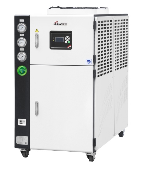 FEATURE: 1.Default Refrigerant as Environmental R410a with high cooling efficiency; 2.With the combination of famous brand compressors, high-efficiency shell and tube condensers/finned condensers, and shell and tube evaporators, providing excellent cooling, quiet operation, and low electricity consumption; 3.Microcomputer LCD chiller controller, simultaneously displays the cold water outlet and the set temperature, easy to operate with accuracy of controlling water temperature within 3°C to 50°C. 4.Current overload protection, high and low pressure protection system and electronic time delay, and an abnormal visual display system;