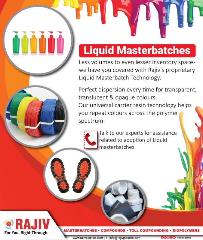 Rajiv’s Liquid Masterbatches offer a highly efficient colouring solution designed to reduce usage volumes, save inventory space, and deliver superior colour performance across polymers. Formulated using advanced liquid dispersion technology, they provide perfect uniformity for transparent, translucent, and opaque colour applications. The universal carrier resin ensures excellent compatibility, enabling consistent shade reproduction across multiple polymer types. Liquid Masterbatches are easy to dose, fast to mix, and ideal for processors looking to improve productivity, achieve cleaner operations, and reduce wastage. They enhance colour strength, improve surface finish, and allow precise colour matching even at low addition levels. Suitable for injection moulding, blow moulding, extrusion, cables, footwear, and packaging applications. For customization or adoption support, Rajiv’s expert team is always ready to assist.
