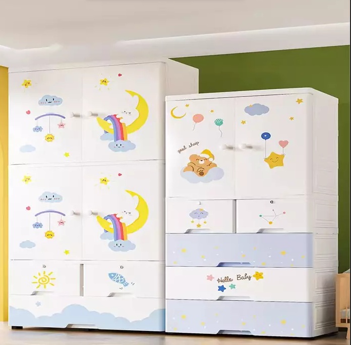 This wardrobe (plastic storage cabinet) is designed for home use with practical features: