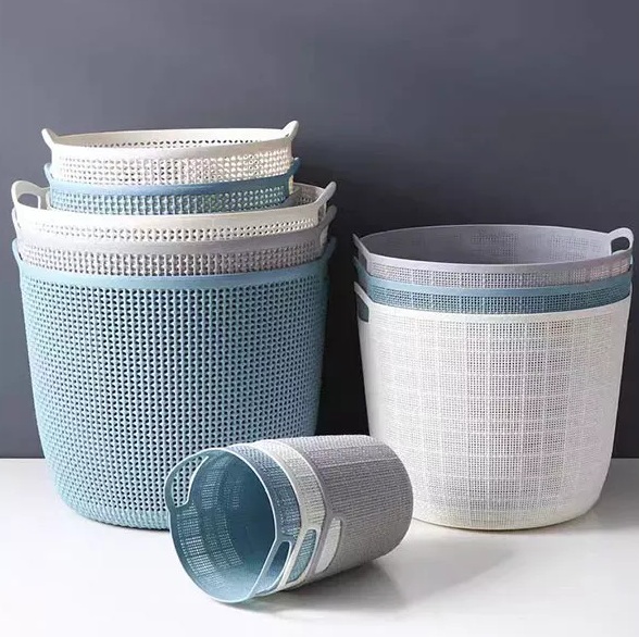 Product Features: Crafted from plastic with a rattan-woven texture, this storage basket combines aesthetics and practicality: ‧ Breathable design: Hollow grid structure allows air circulation, preventing mustiness—ideal for storing clothes, toys or sundries without moisture buildup. ‧ Multiple sizes & stackable: Available in various dimensions; stackable when not in use to save space. ‧ Portable details: Equipped with side handles for easy moving; soft fresh colors (blue, white, gray) fit living rooms, bedrooms and other home styles. ‧ Durable & easy to clean: Waterproof and stain-resistant plastic material can be cleaned with a simple wipe—an attractive, functional tool for home organization.