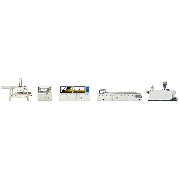 Applications:PVC profiles such as window&door profiles, PVC window sills, etc; WPC profiles such as decking, door panels, kitchen, etc. Equipment components:Conical(parallel)twin screw extruder—profile, board mould—vacuum calibration table—hauler—cutter—stacker Features:According to customer’s requirements, the screw with the most reasonable structure is prepared to achieve the best plasticity state and high plasticizing ability, low power consumption, high cost performance.