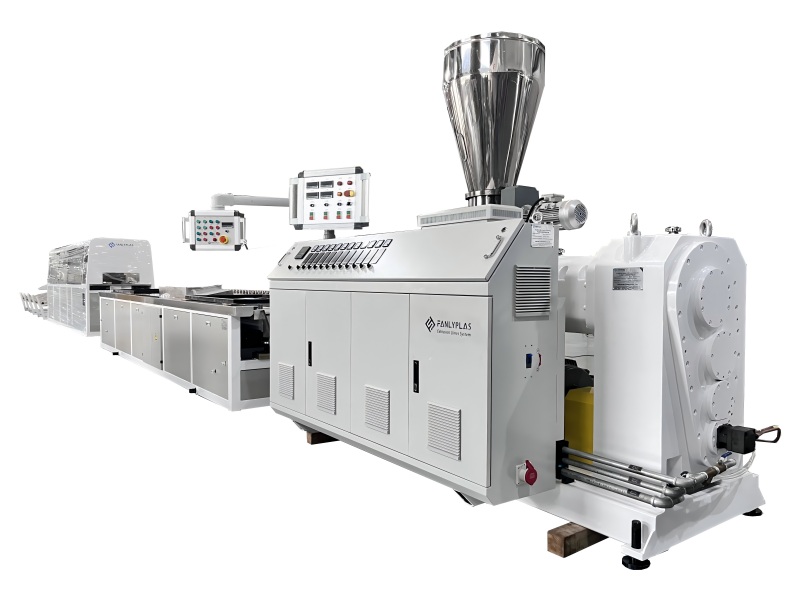 FANLYPLAS UPVC Profile Extrusion Lines are engineered for the efficient production of a wide range of UPVC profiles. These include window and door frames, wall panels, skirting boards, conduit pipes, and other architectural and decorative profiles. Our lines ensure high precision and consistency, serving diverse needs in construction, decoration, and industrial applications. Our UPVC Profile Extrusion Lines boast advanced technology and robust construction. Key features include highly efficient twin-screw extruders for excellent plasticizing, precise die heads for uniform profile shaping, and intelligent control systems for stable operation. This design guarantees superior product quality, energy efficiency, and low maintenance, ensuring a high return on investment.