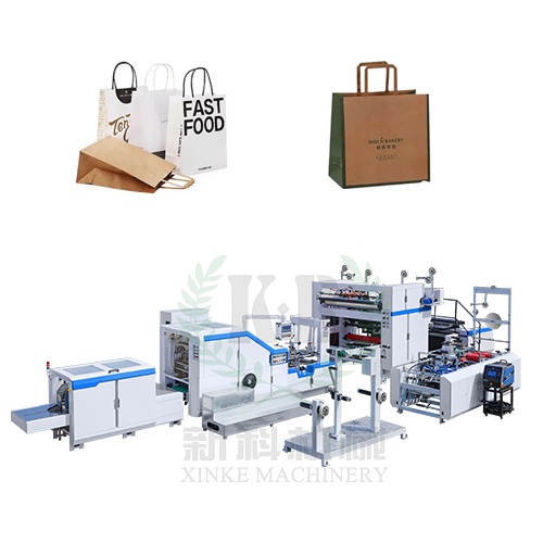 RUIAN XINKE MACHINERY CO., LTD - Fully Automatic Square Bottom Paper Bag Machine With Handle Inline
