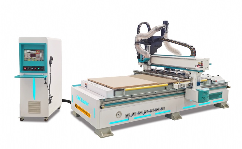 Function: Woodworking ATC CNC engraving machine is suitable for woodworking, wooden doors, furniture, cabinets, etc. It adopts a linear Automatic Tool Changing system and has a tool magazine capacity of 12 cutters. Vacuum adsorption table, high-power vacuum pump, the air volume of each vacuum pump can reach 350m3/h. Main Features: Introduce a new generation of LNC control system, intelligent processing cross-border protection function. The whole machine bed is welded and tempered by steel structure, which has strong rigidity and no distortion. Using high-power air spindle, the cutting force is high. Linear automatic tool change system with a tool magazine capacity of 12 cutters. Automatic tool setting function. Double-deck adsorption table with 7.5KW water vacuum pump, so that the air pressure distribution more uniform. No engraving saw-tooth, smooth under surface, legible contour, by high-power spindle.